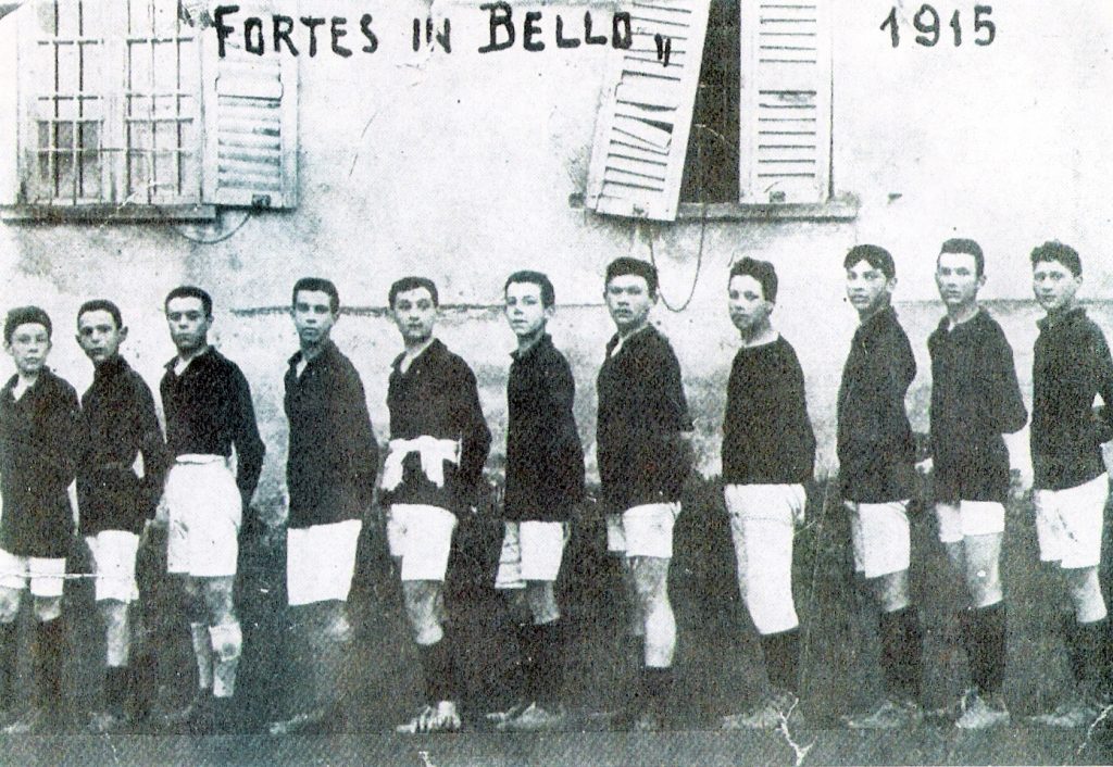 Foto 1 Ciso Stanga, Mario Torresani, Rinaldi, Mario Barbisotti, Landucci, Berto Barbisotti, Spadari, Bigio Toscani, Mario Armellini, Battista Cordani, Torresani (Fortes in Bello precorritrice dell’U.S. SORESINESE Anno 1915)